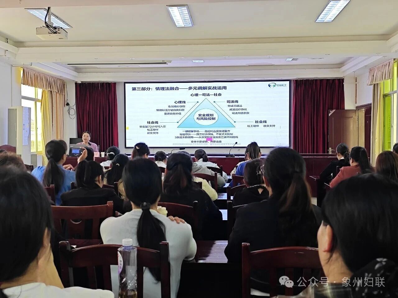 此次公益巡讲暨授课培训活动,有效针对基层调解力量短板而“接单”,进一步提升社区干部、网格员基层治理、信访维稳、妇女维权等专业素养,为今后以更专业、更暖心的服务回应群众诉求,切实把“平安家庭”建设融入日常工作,为推动象州镇基层治理提质增效、维护社会和谐稳定筑牢根基。