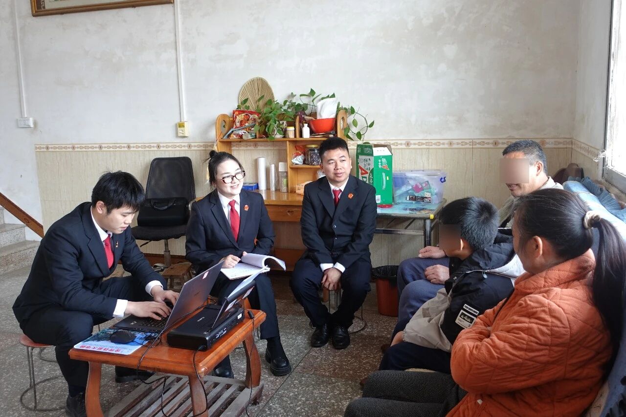 2025年11月5日,金秀法院法官和民政局等部门工作人员到收养人家中作情况摸底。