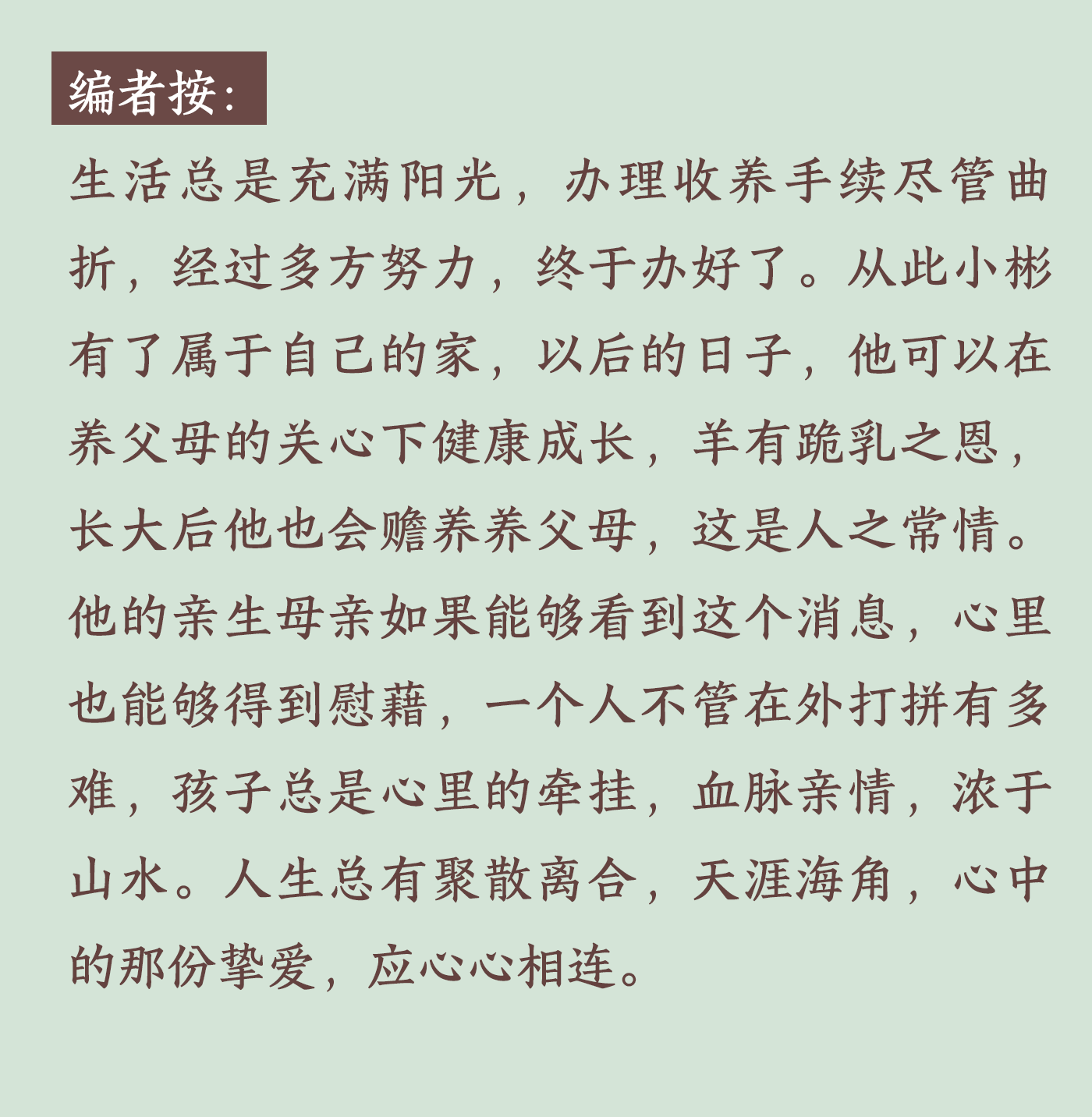 “我是自愿的,同意被收养。”被收养人小彬说。