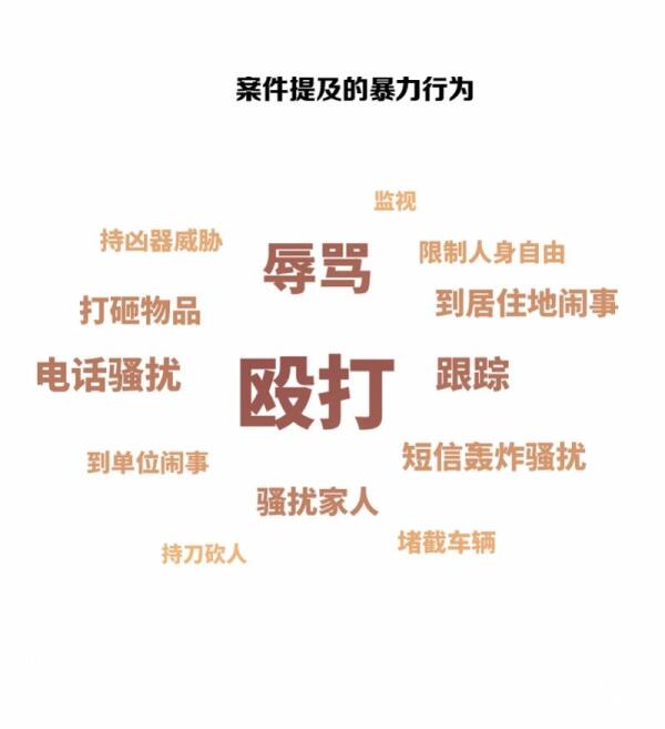 而根据裁定书提及的家暴行为进行分析,除了常见的殴打、威胁、打砸等身体侵害行为之外,还有跟踪、骚扰、经常性谩骂、电话骚扰等精神侵害行为以及限制人身自由行为。