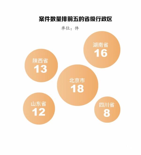 南都记者此次分析的数据结论,样本选自中国裁判文书网在2022年1月至6月之间公开的111件人身安全保护令案件,涉及22个省级行政区,其中北京市、湖南省、陕西省三地公开的案件数名列前三,分别为18件、16件、13件。