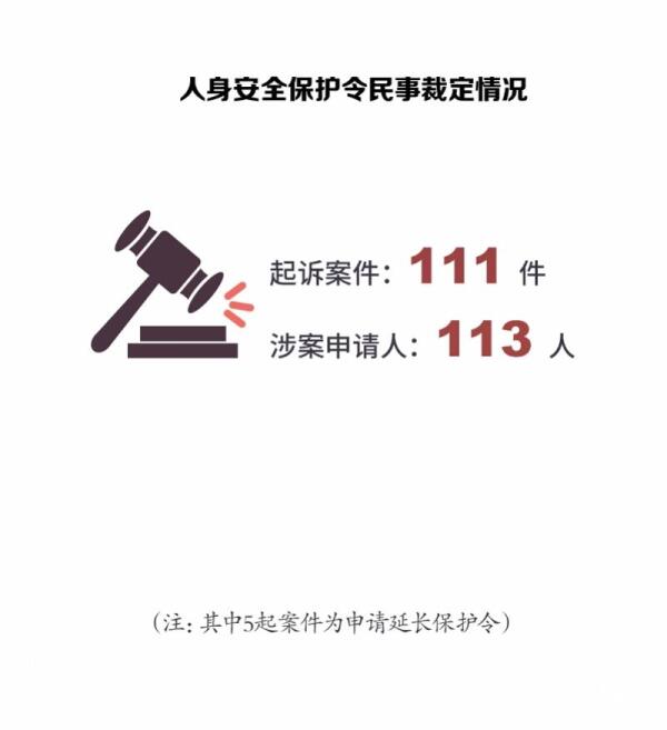 值得注意的是,在111件案件中,有84.68%的案件获得法院的支持,法院发出人身安全保护令,禁止被申请人再次对申请人进行家庭暴力,为受害者筑起一道隔离家暴的防火墙。